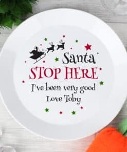Leave Santa and Rudolph a tasty treat on Christmas Eve with this fantastic personalised Santa Stop Here Plastic Plate.